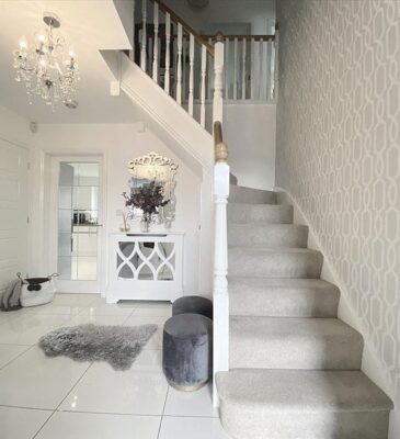 If you’re brave enough, a bold, dark grey wall leading up your stairs will completely transform the whole room. Keep your décor simple and choose lighter colours for your flooring and runner so the full effect of the dark paint can be felt.