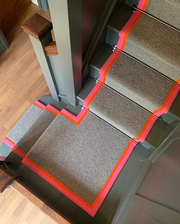 For a grey staircase that feels fun and young, add a pop of colour with a runner trim. A vibrant pink trim will add a burst of excitement to your hallway and draw the eye upwards, making the space feel bigger. If you dare to go bold, double up with a clashing multicolour trim.