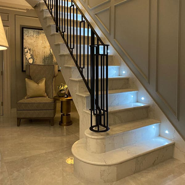 A fabulous grey marble staircase is an elegant way to add some interest to a large hallway without dating it. The beauty of marble is that it comes in so many varieties. Whether you choose a white marble with grey veins or a grey marble with black veins, this material will always look sophisticated.