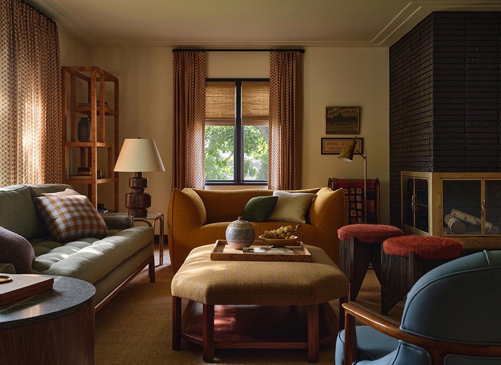 At the heart of the project were two fireplaces, the anchors around which Anne built the design. They grounded the space and gave her an entry point into mid-century style. From there, she drew inspiration from a plaster detail on the formal living room ceiling, shaping a softer version of mid-century: less sharp-edged, more inviting.